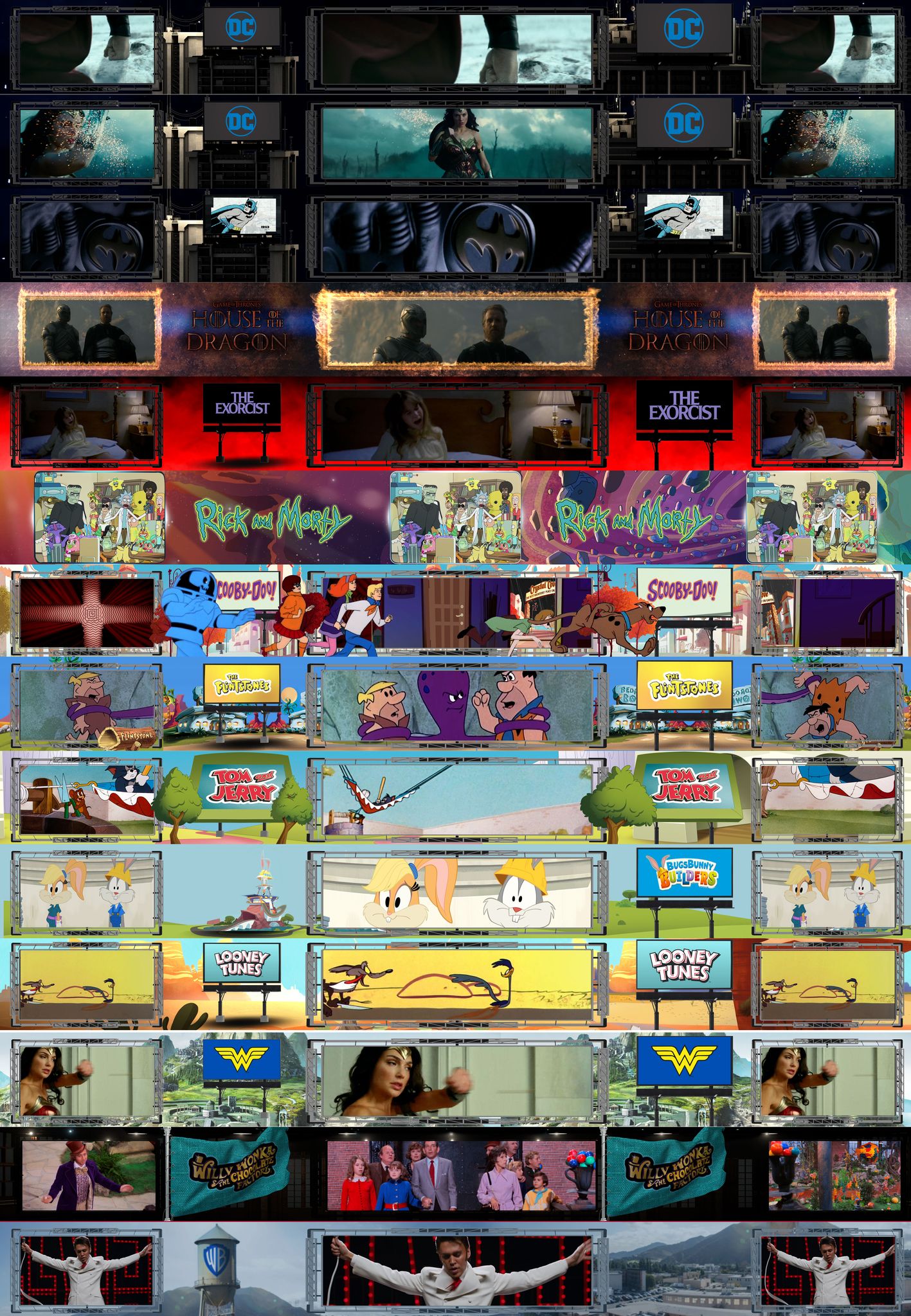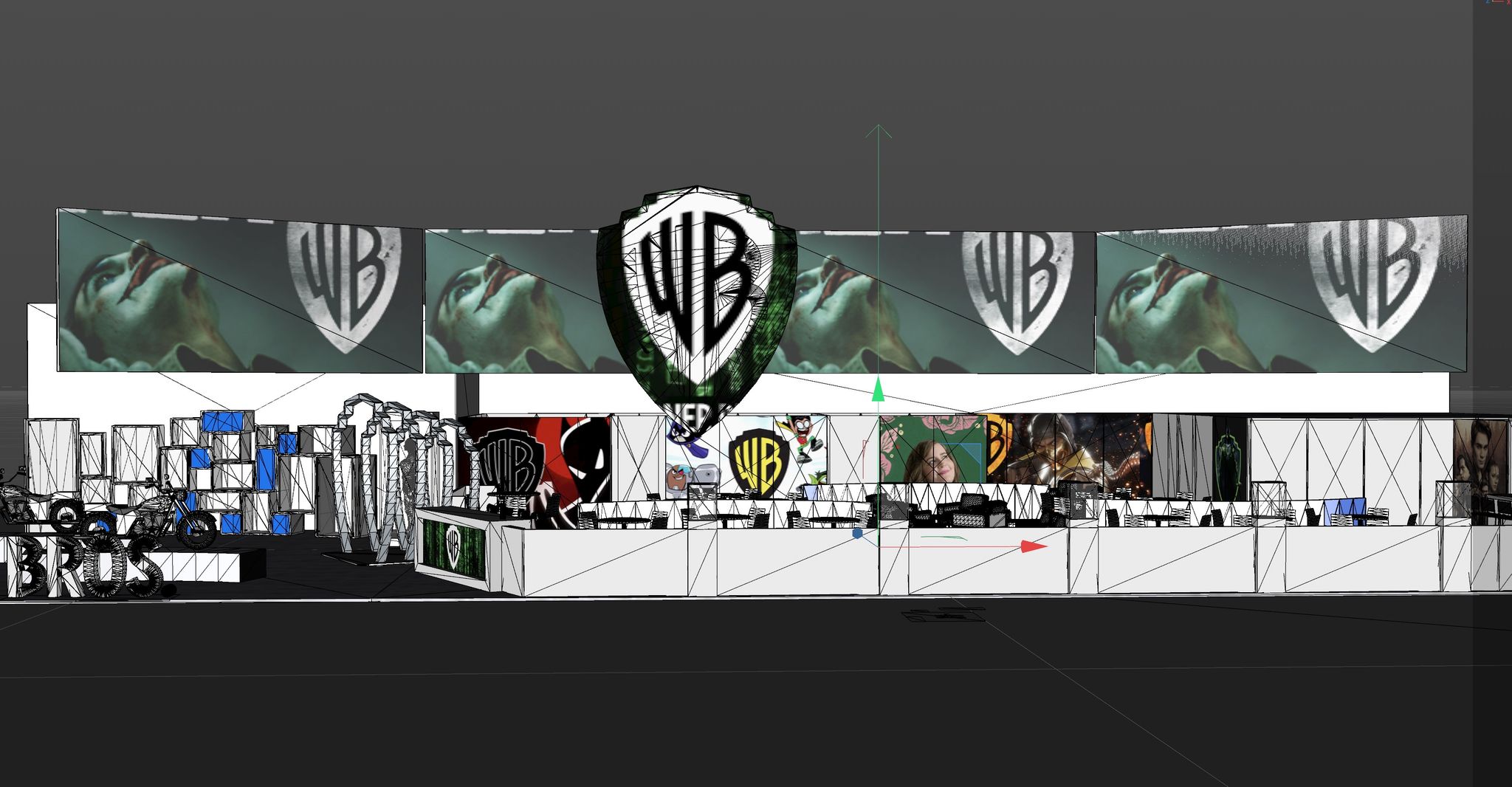 The set up for previz for the Warner Brothers booth at 2022 Licensing expo