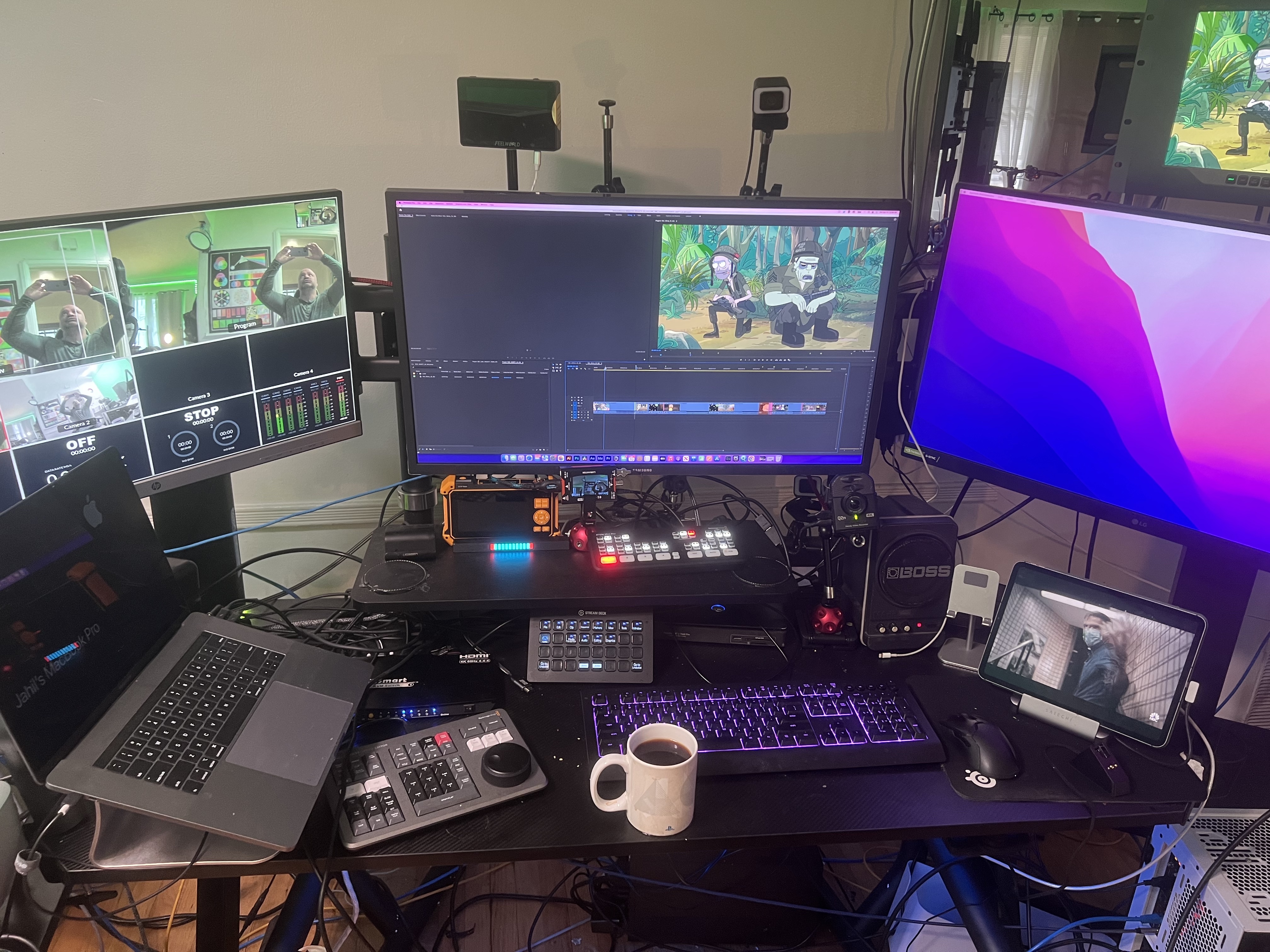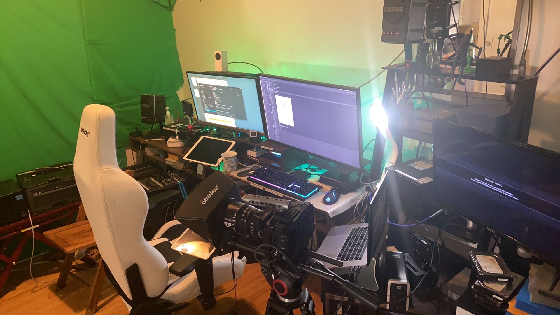 Before Covid this was my home kitchen, but now its my remote Editing, Compositing,and Streaming Station.